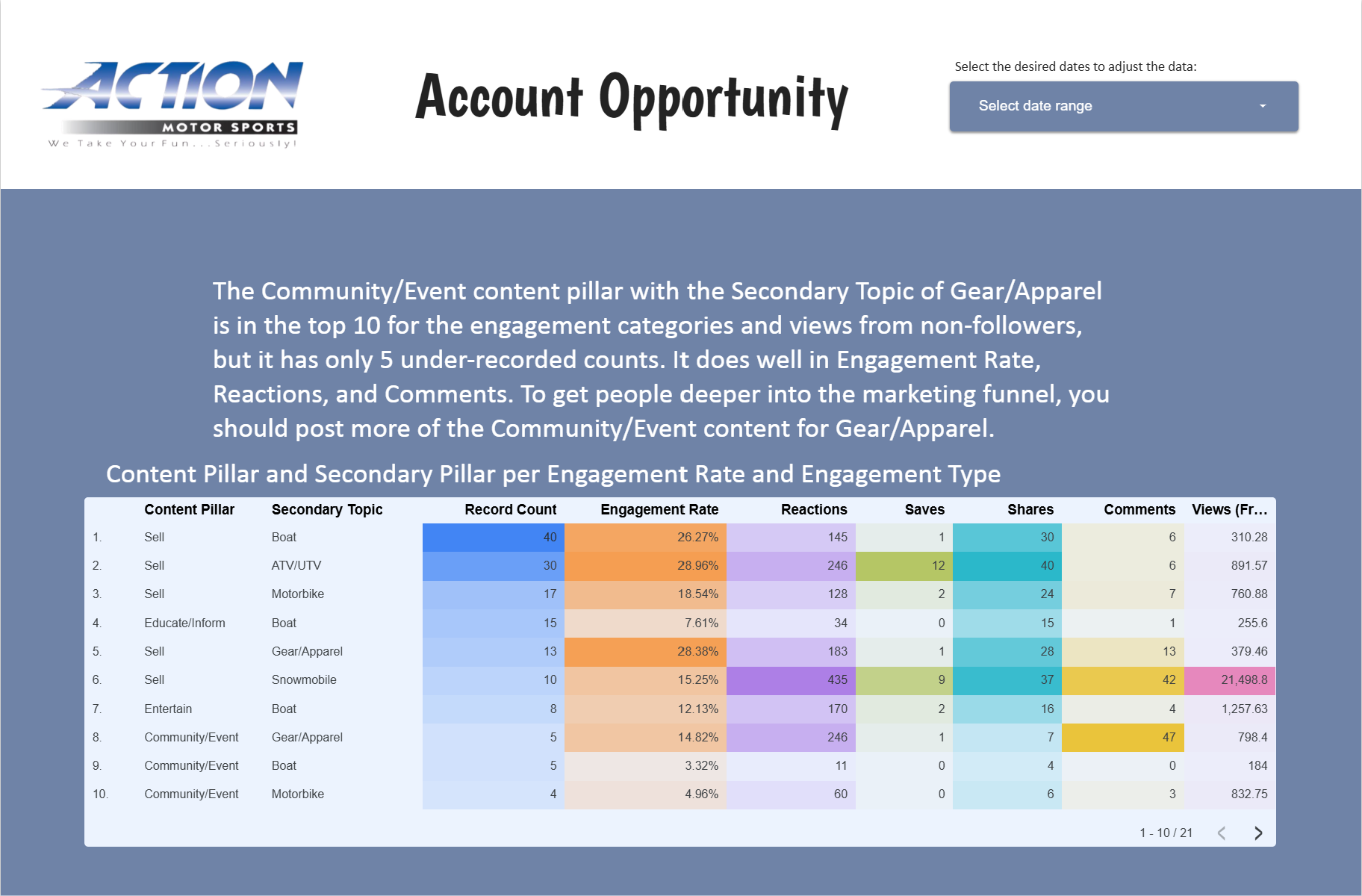 This is part of a Looker Studio report I did for Action Motor Sports. This is an opportunity I found that they can use.